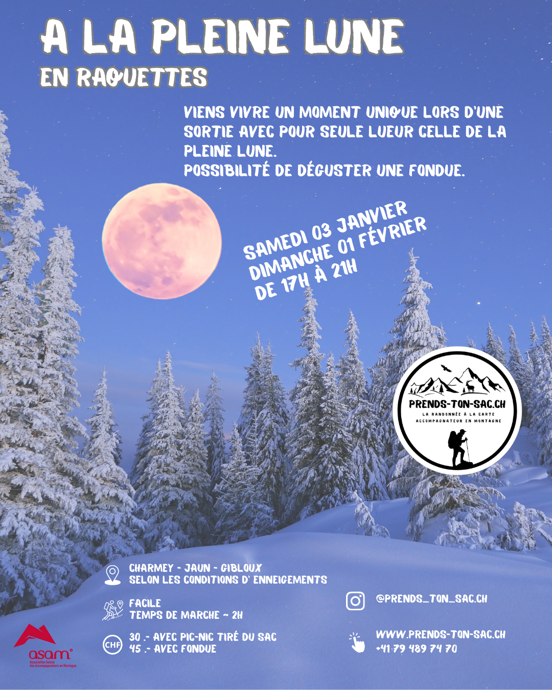 Viens vivre un moment unique lors d'une sortie avec pour seule lueur celle de la pleine lune.